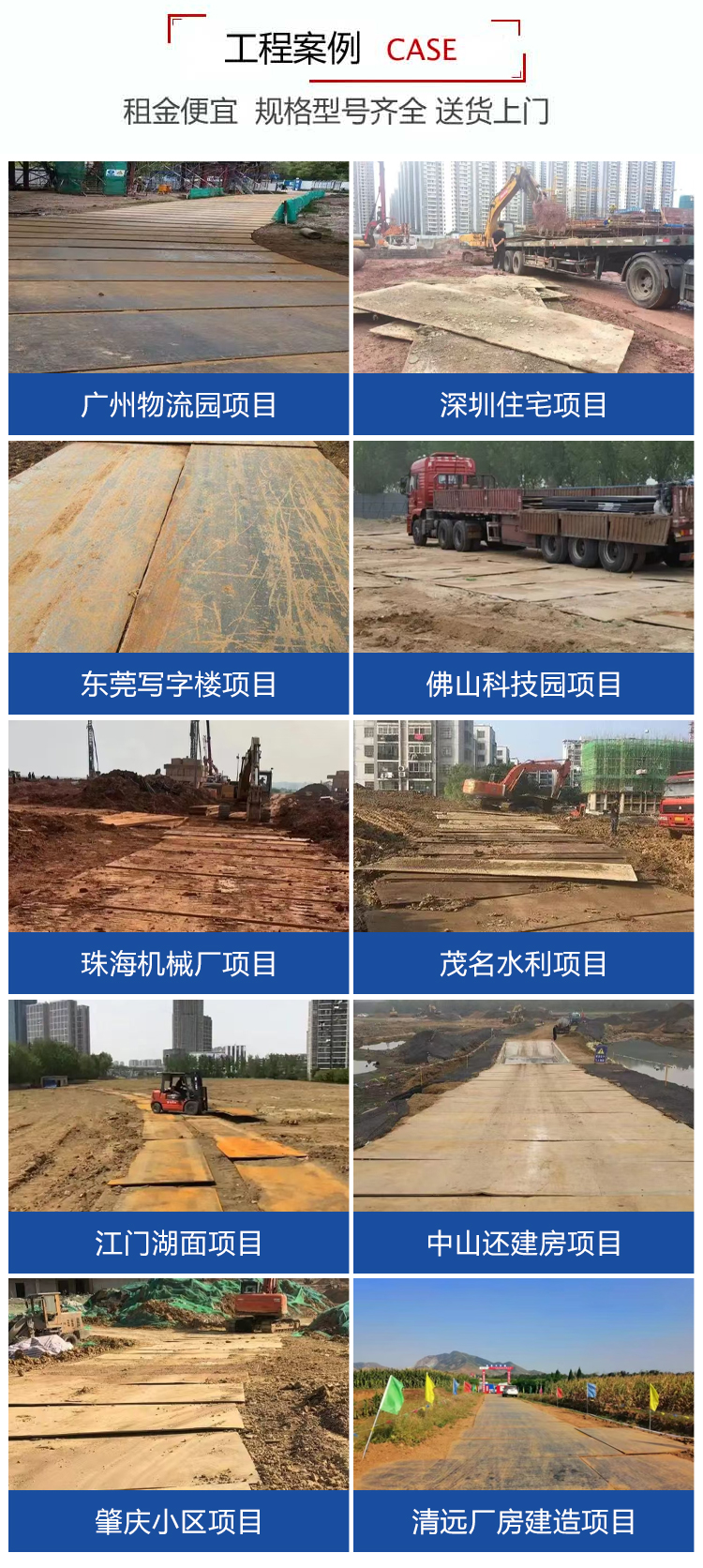 廣州鋼強工貿有限公司是一家專業從事建筑設備租賃的企業。公司主營:建筑工程設備的鋼板租賃、路基箱、鋼模板、路基板、走道板租賃及運輸、施工、鋪路墊路等。鋪路鋼板主要廣泛用于土方工程鋪路.建筑工地用作鋪設便道,臨時道路推行、旋挖樁工機械墊腳、大型設備吊裝等。鋪路鋼板在各個土方工程松軟地基的墊鋪和復雜路面的加固中發揮了重要的作用 為您的施工提供堅實的保障鋼板租賃是一種可以十分有效節約資金的方式,在市場上通過租賃鋼板完成工程的施工企業越來越多。這種方式受到了眾多企業的歡迎,可以看出鋼板租賃的市場前景一片光明。鋼板租賃只需要付出鋼板的租賃費用就可以了,這對于資金緊缺的企業來講是很方便的,畢竟購買同樣數量的鋼板的價格是需要更多的資金的,如果一開始就在鋼板的問題上花費了大量的經費,在工程后期很有可能出現資金···